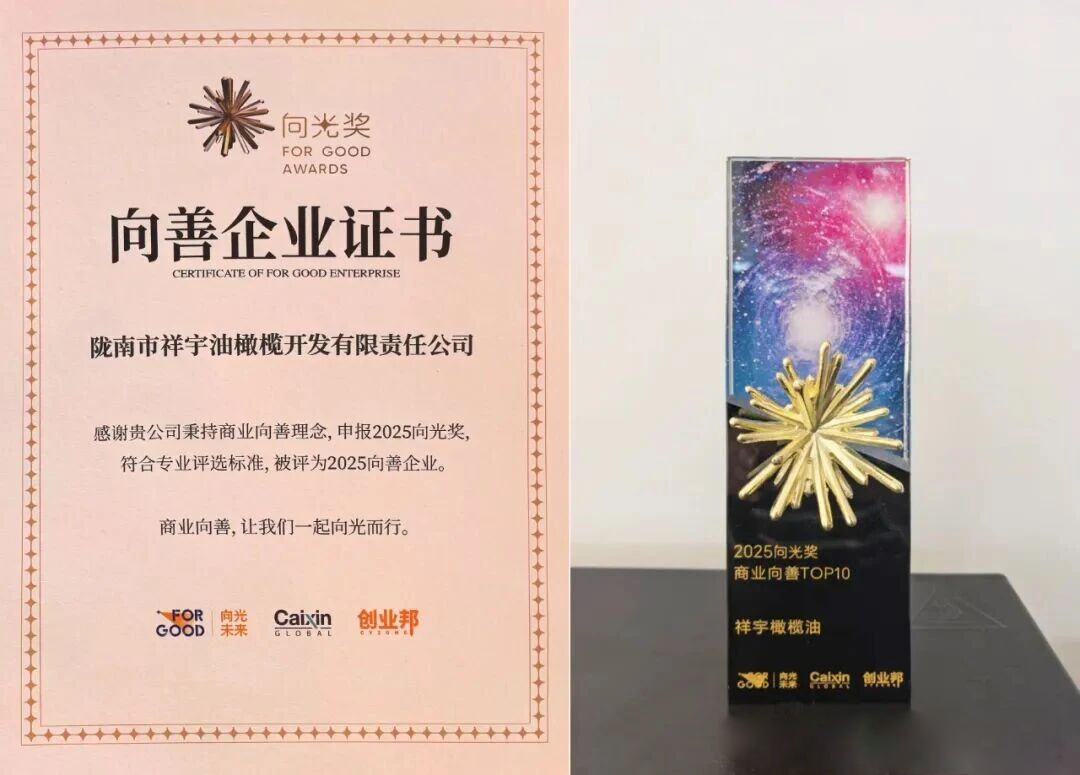向光而行·向善而生 | 祥宇橄榄油获2025向光奖商业向善TOP10